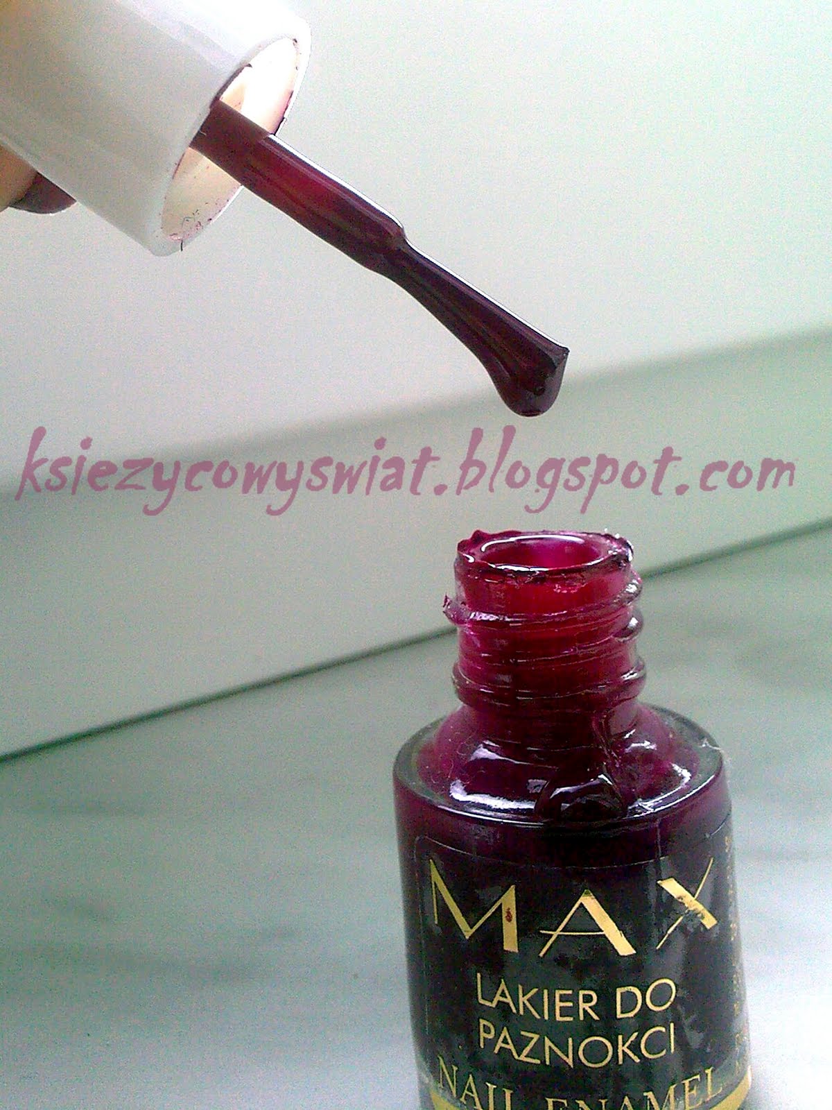 Lakier MAX jest świetnym i nie drogim lakierem. Dobrze kryje (wystarczą 2 warstwy), ma idealny pędzelek (ani za twardy, ani za miękki), szybko schnie na paznokciach oraz zachowuje szklisty blask